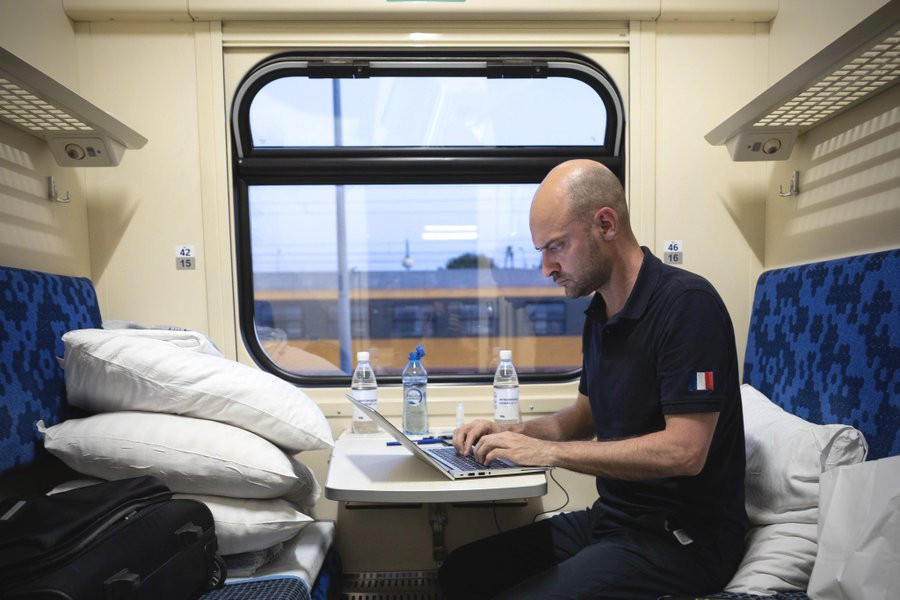 У ранковому пості Барро поділився фотографією з українського потяга, зазначивши, що прямує до столиці.
