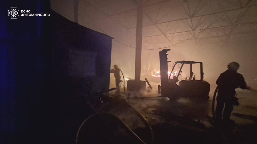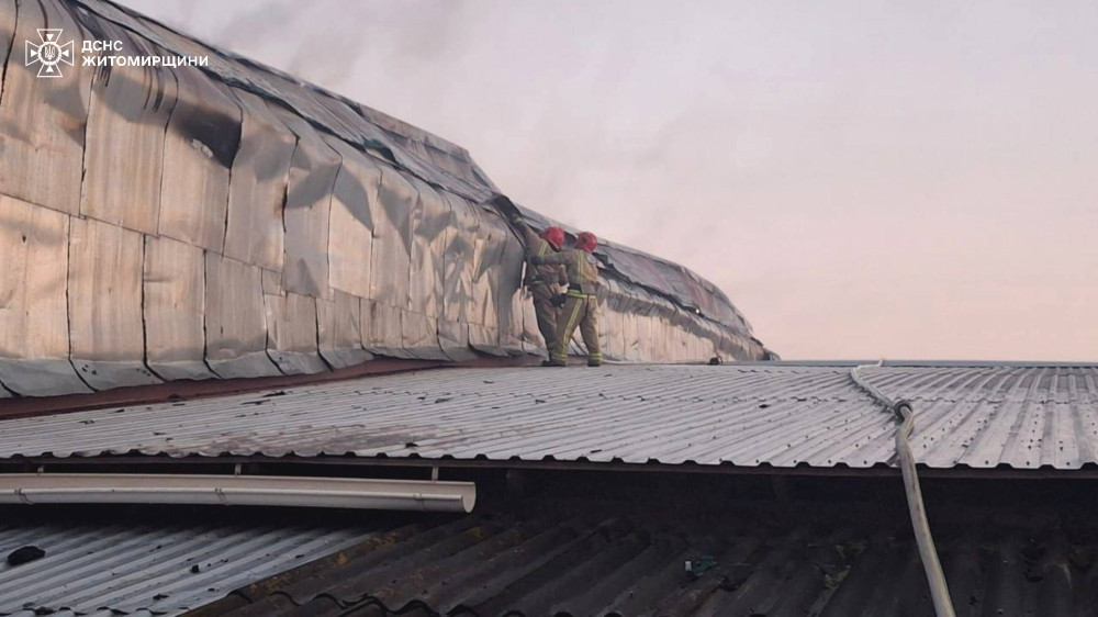 В нічний час у Коростені, Житомирської області, вогнеборці успішно ліквідували вогонь у металевій будівлі складу, що не експлуатується. Пожежа охопила дерев'яні конструкції даху і стін, сендвіч-панелі та інше майно всередині. Загальна площа пожежі становила близько 500 квадратних метрів. Існувала небезпека розповсюдження полум'я на сусідній склад. Гасіння ускладнювалося сильним димом та високою температурою. Рятувальники працювали на даху будівлі, висота якого досягала 10 метрів. Для ліквідації пожежі було залучено додаткові сили та техніку.
