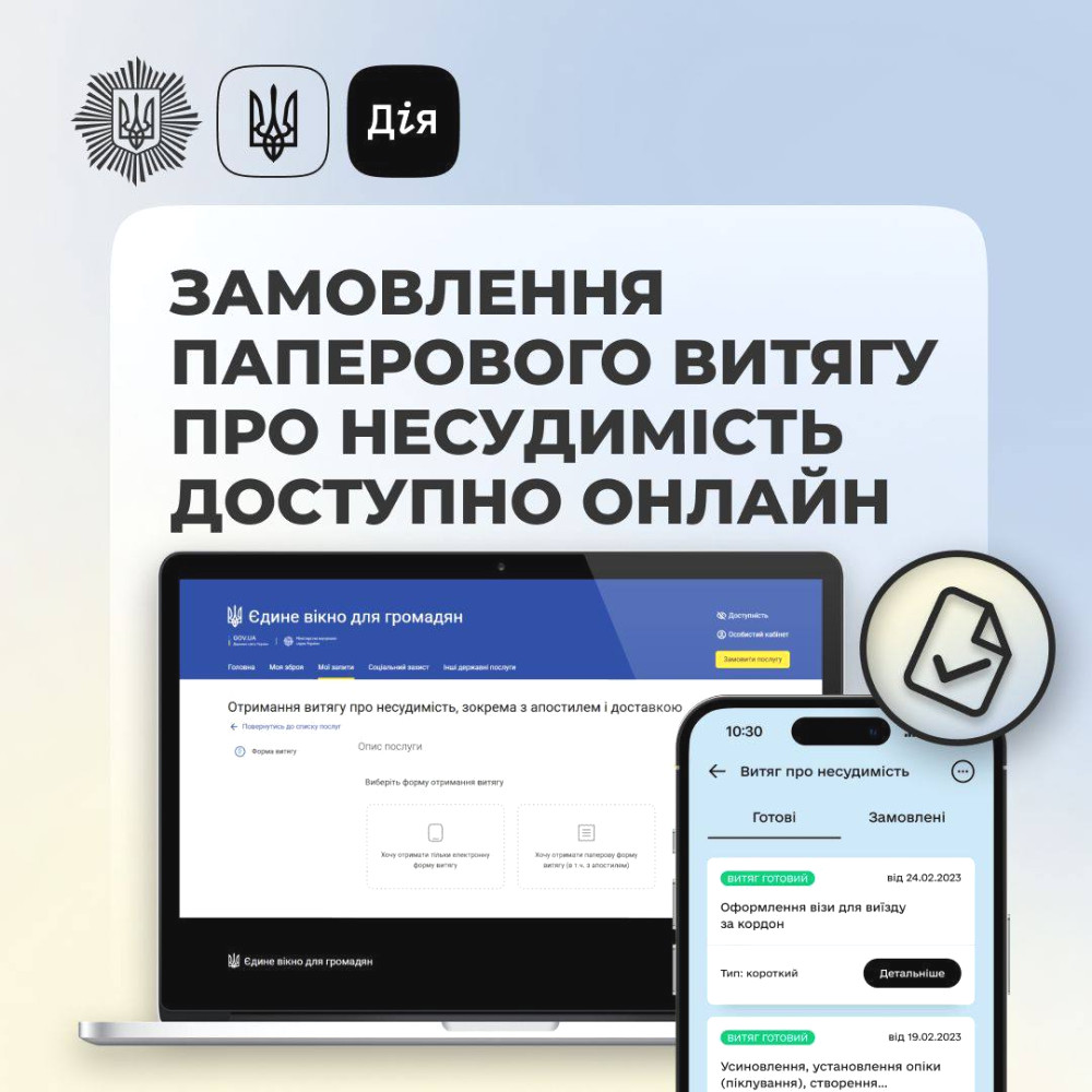 Тепер ви можете отримати паперовий витяг про несудимість з апостилем через онлайн-сервіси «Єдиного вікна для громадян» або додаток «Дія».