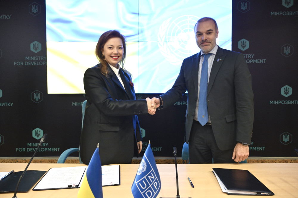 У Києві документ підписали Альона Шкрум, перша заступниця міністра, та Христофорос Політіс, заступник постійного представника ПРООН в Україні.