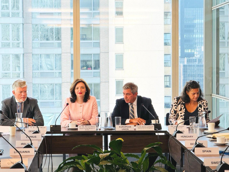 Додатково, вона провела спільний брифінг для постійних представників країн Європейського Союзу та окремі зустрічі з послами Канади, Південної Кореї, Литви, Естонії, ПАР і Ліберії.
