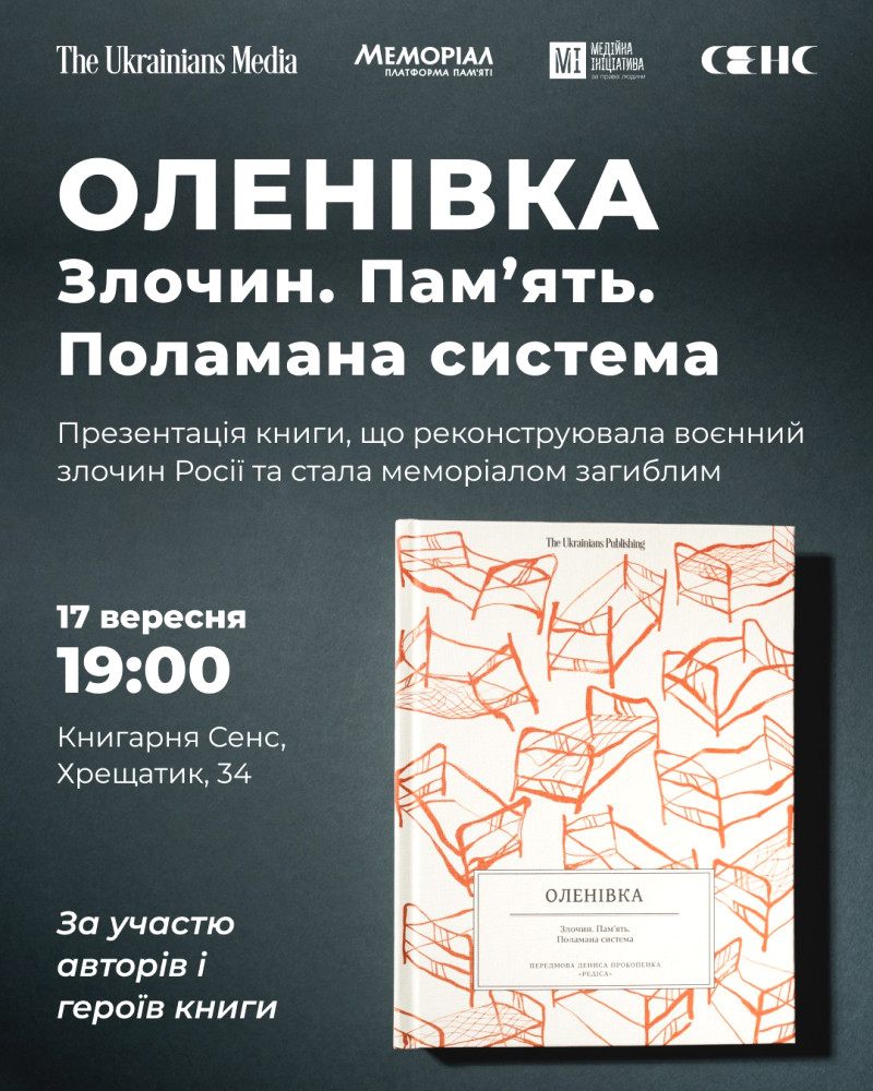 17 вересня о 19:00 в Києві, у книгарні “Сенс” (Хрещатик, 34), відбудеться захід, присвячений новій книзі “Оленівка. Злочин. Пам’ять. Поламана система”, де братимуть участь автори та свідки подій.