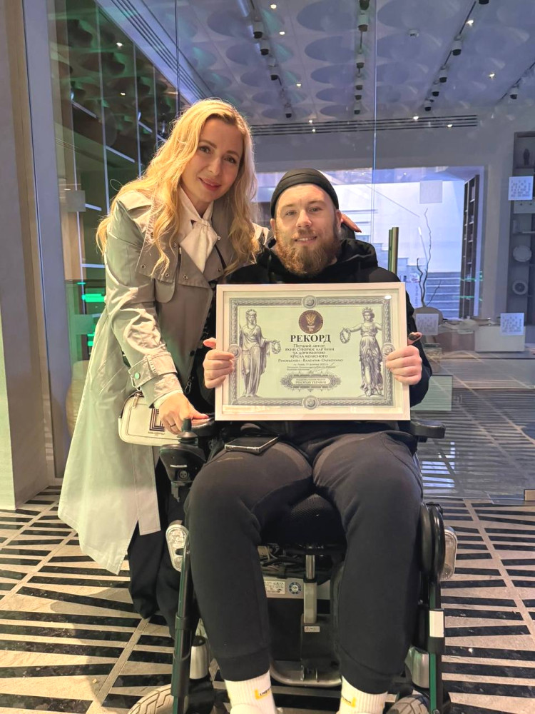 Валентин Олексієнко, житель Ворзеля та ветеран, встановив національний рекорд у категорії «Перша особа, що малює, використовуючи колісне крісло». Це повідомляє Бучанська міська рада.