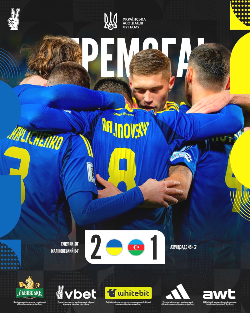 Збірна України з футболу продовжує свій успішний шлях у відборі на чемпіонат світу-2026, здобувши вже другу перемогу поспіль. У четвертому турі кваліфікації «синьо-жовті» обіграли Азербайджан з рахунком 2:1, завдяки голам Олексія Гуцуляка та Руслана Малиновського.