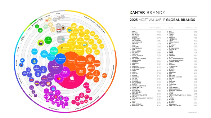 Компанія Kantar, яка є одним із провідних гравців у сфері маркетингових даних та аналітики, представила свій новий рейтинг найдорожчих брендів світу на 2025 рік.