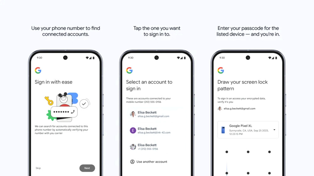 Ще одне нововведення — можливість входу за мобільним номером. Ця функція для Android дозволяє автоматично ідентифікувати акаунт Google за прив’язаним номером телефону. Це стане в нагоді тим, хто втратив свій пристрій і намагається відновити доступ на новому смартфоні. Замість вводу пароля система запитає код блокування екрана з попереднього пристрою.