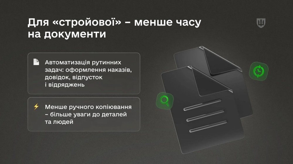 - Для "стройової" – єдина картка військового, де фіксуються всі події служби, що дозволяє забезпечити узгодженість інформації про підрозділ.