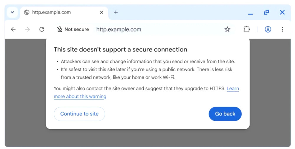 Компанія Google оголосила, що з жовтня 2026 року у браузері Chrome буде автоматично активовано нову функцію під назвою "Завжди використовувати безпечні з'єднання". Це означає, що при спробі відкрити сайт без HTTPS, браузер видасть попередження.