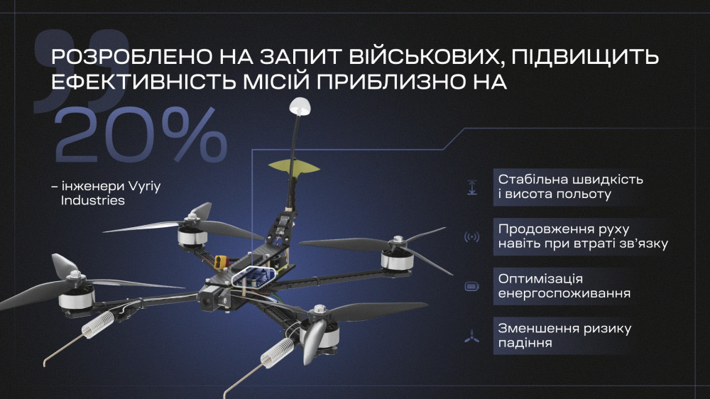"Ми першими в Україні реалізували таке рішення на системному рівні, розроблене за запитом військових. На наших оцінках, це підвищить стійкість дронів до радіоелектронного впливу та їх ефективність приблизно на 20%", – зазначили інженери VYRIY.