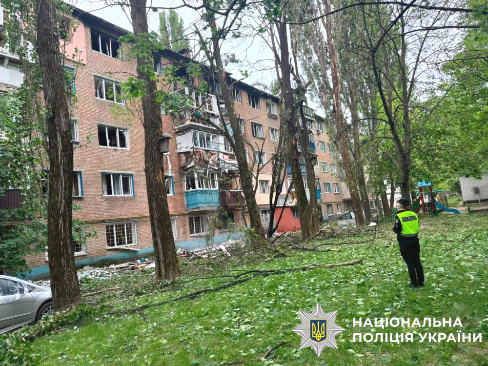 У Дніпровському районі постраждало подружжя, чоловік і жінка 40 та 41 років, до яких в квартиру на пʼятому поверсі потрапив уламок.