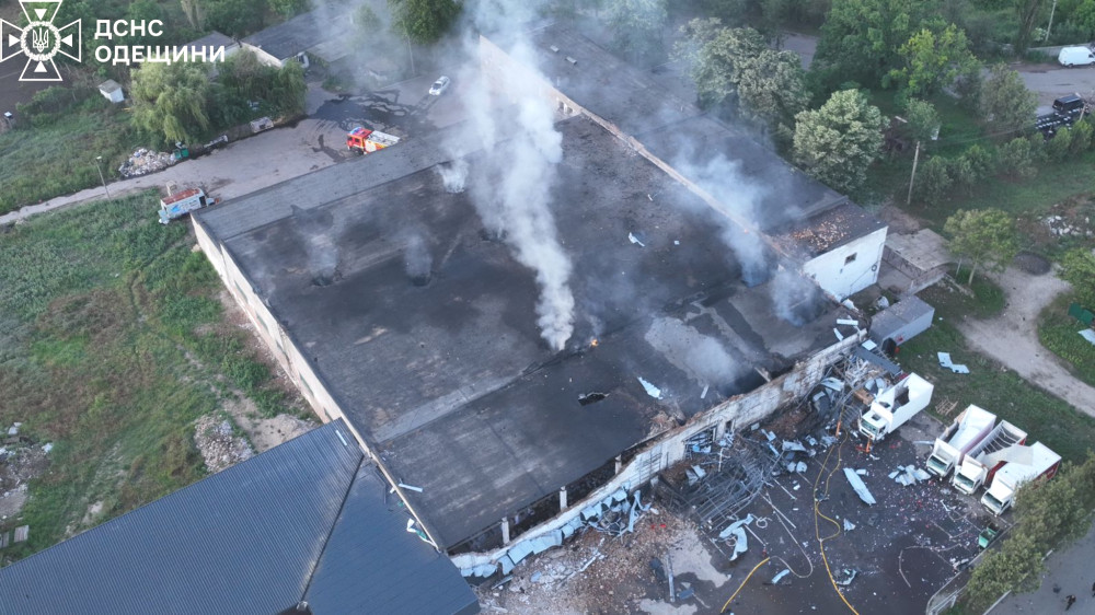 "Внаслідок безпілотникової атаки відбулося загоряння та значні пошкодження відділення Нової Пошти. Також постраждали сусідні вантажівки. Рятувальні служби, разом із Національною гвардією, загасили пожежу, що охопила площу в 300 м кв." — ГУ ДСНС в Одеській області