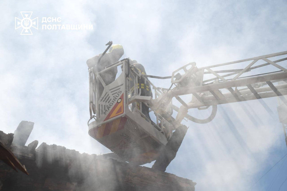 Рятувальники зазначили, що під час атаки спалахнула пожежа на площі 700 квадратних метрів у двоповерховій будівлі. Станом на 14:05 - вогонь був ліквідований.