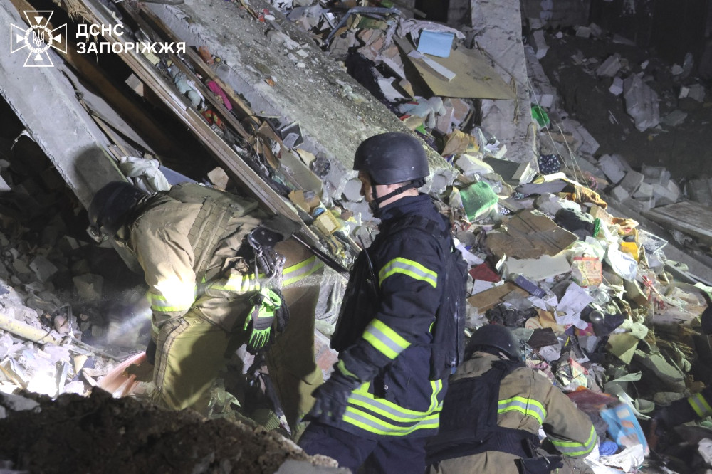 Після обстрілу рятувальники оперативно розпочали пошуково-рятувальні роботи. На місці події працює кінологічний підрозділ, який допомагає шукати людей під завалами.