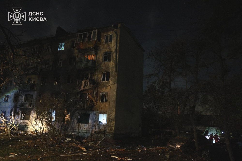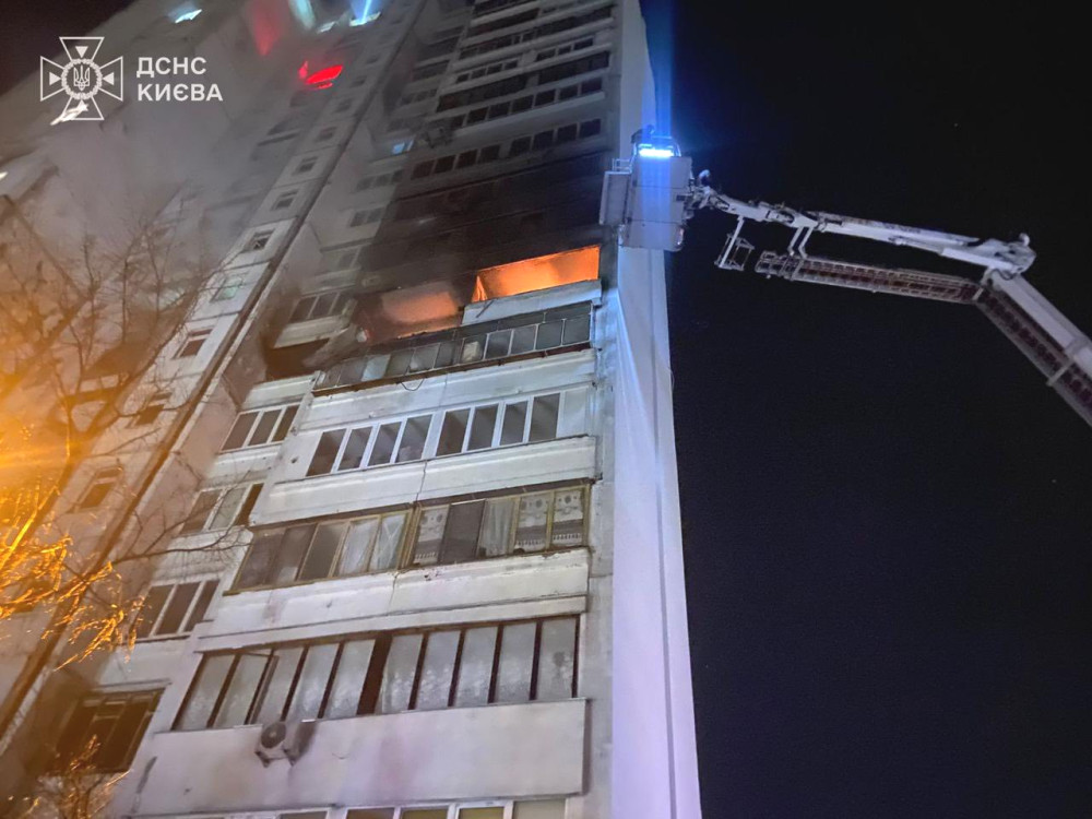 У Дніпровському районі уламки дрону потрапили в п'ятиповерхівку, викликавши руйнування на нижніх поверхах і пожежу в двох квартирах. Усього рятувальники врятували понад 40 мешканців з постраждалих будинків.