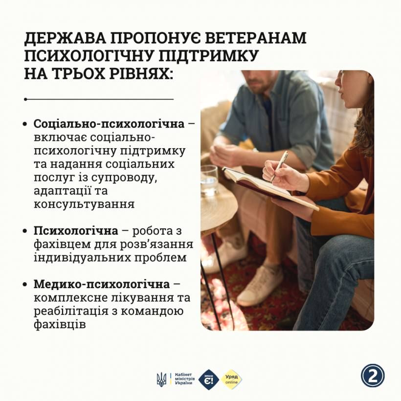 Психологічна допомога ветеранам надається на трьох основних рівнях: